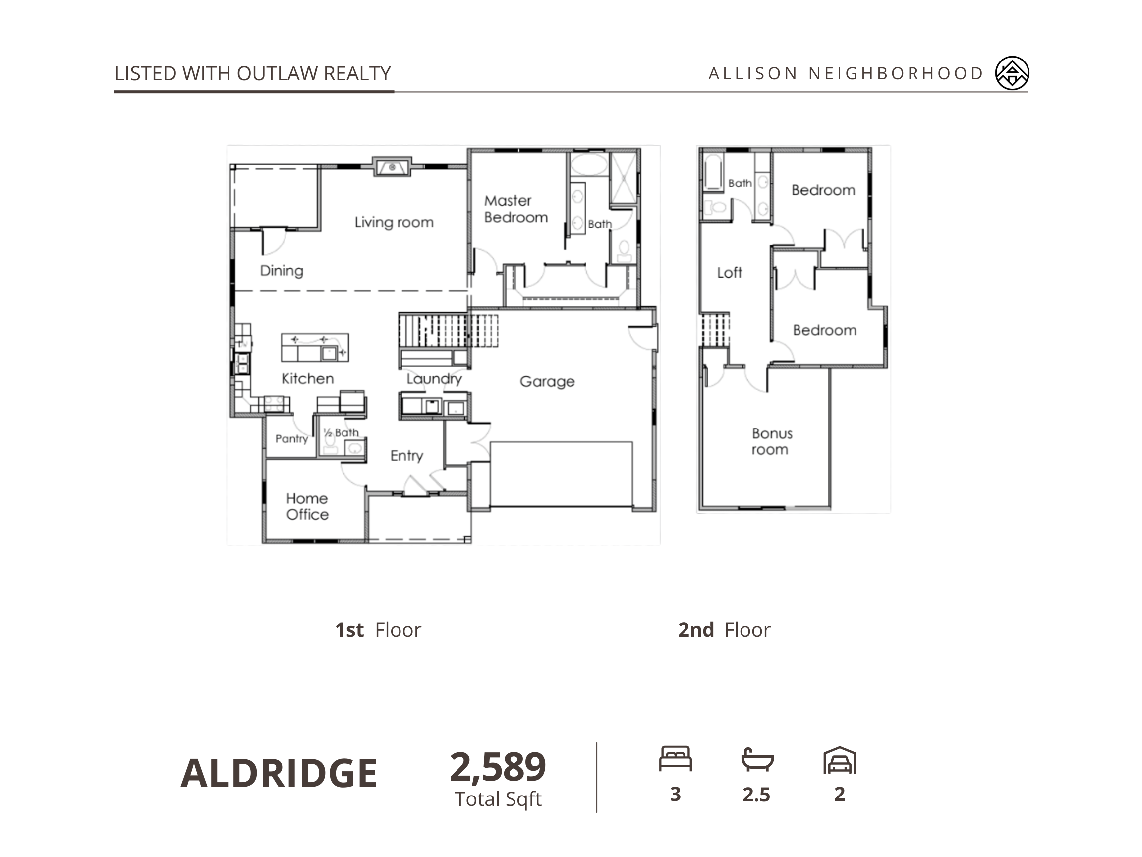 Lot #27The Aldridge features a first-floor primary suite and entryway home office, with two additional bedrooms upstairs, plus a bonus room and loft.