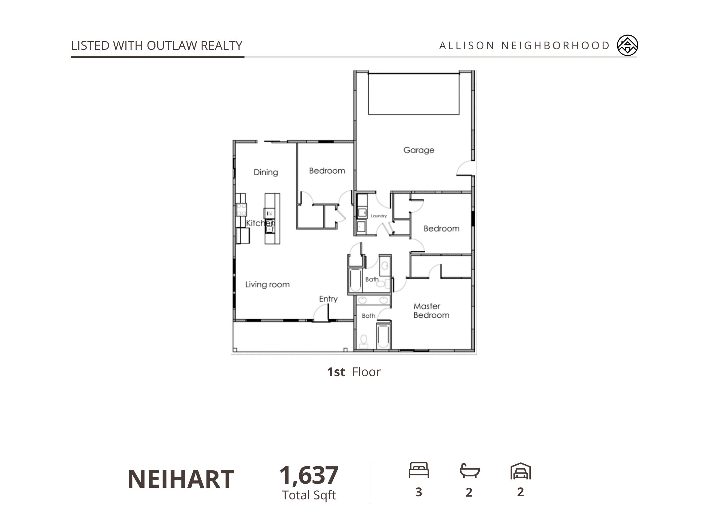 Lot #22The Neihart is a single-story 3 bed, 2 bath home with an open layout designed for comfortable main-level living.